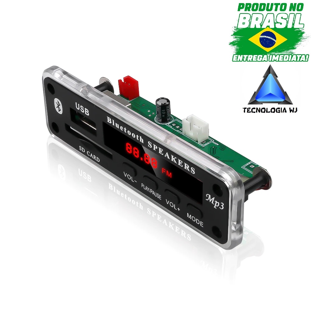 Placa Decodificador 9V 12V P/ Caixa Ativa Carro Som Automotivo Toca Mp3 Rádio Fm Aux Bluetooth Usb Cartão SD
