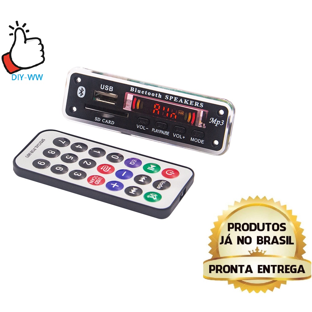 Placa Decodificador Mp3 Lcd/usb/sd/bluetooth/rádio FM/entrada auxiliar/controle remoto - alta qualidade - vários kit´s
