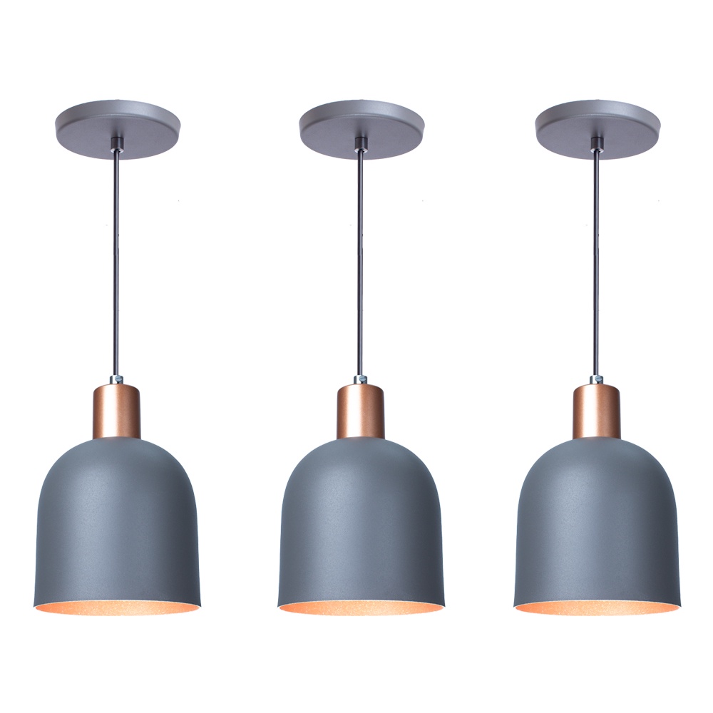 Kit 3 Pendente Lustre Luminária Open em Alumínio Cinza