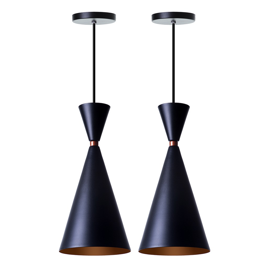 Kit 3 Pendente Luminaria Teto Estilo Meia Lua Preto com cobre 40 cm Aluminio Decorações Elegante Para sua casa em Geral