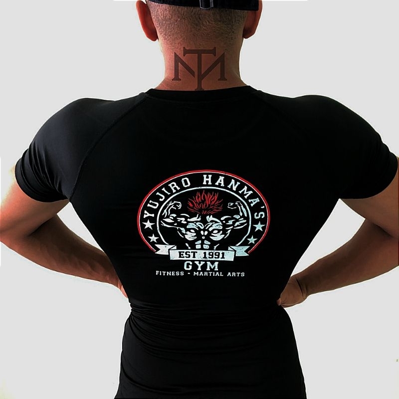 Camisa de compressão manga curta seca rápido, estilo Anime Baki Hanma para Academia corrida