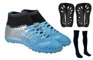 Chuteira Society Botinha Cano Alto Costurada Leve + Caneleira e Meião - Uzze Sport