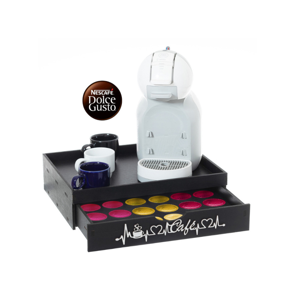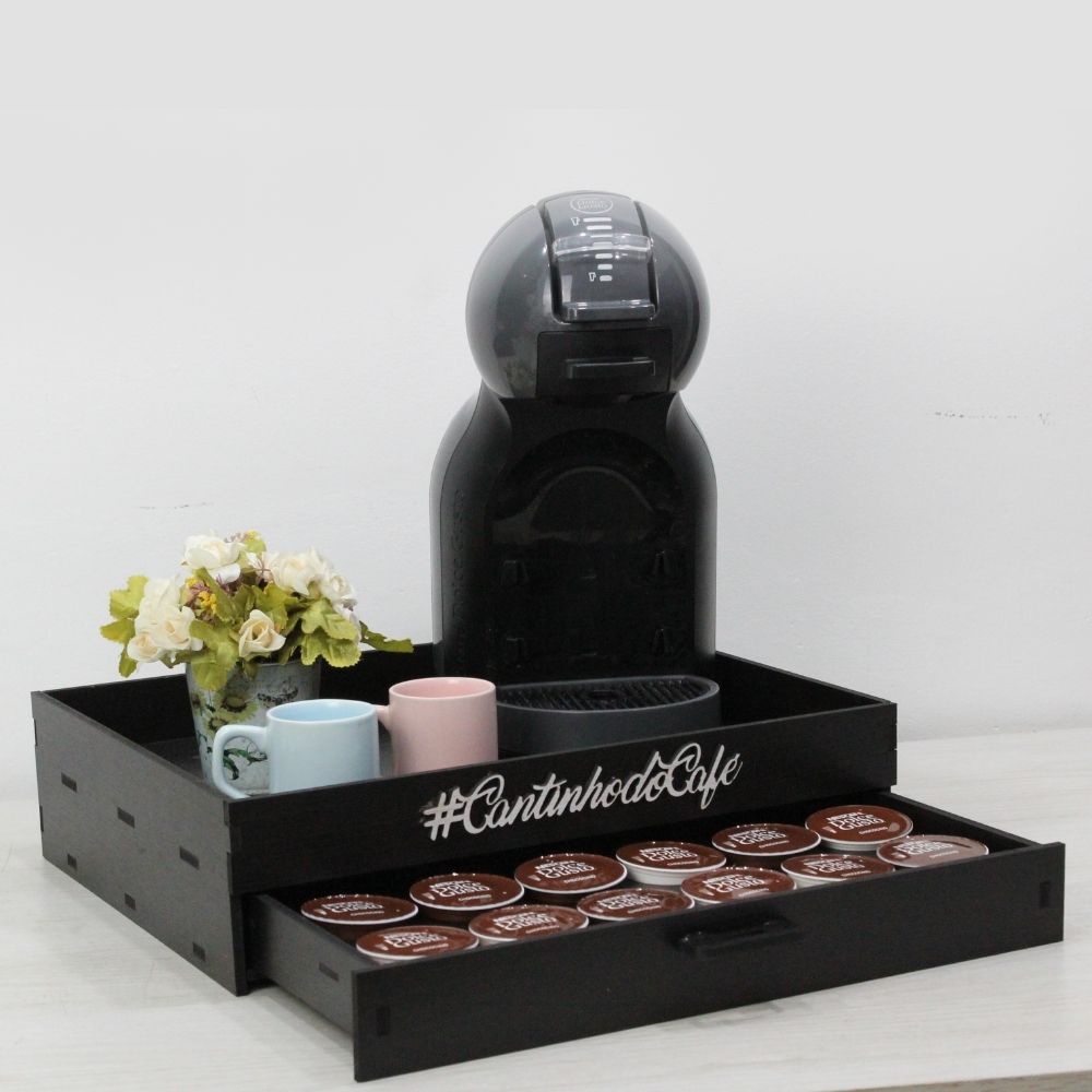 Bandeja Cantinho do Café com Gaveta Porta Capsula Dolce Gusto 24 Capsulas Preto Gaveta Embutida Reforçado Suporta Maquina - Decori Br