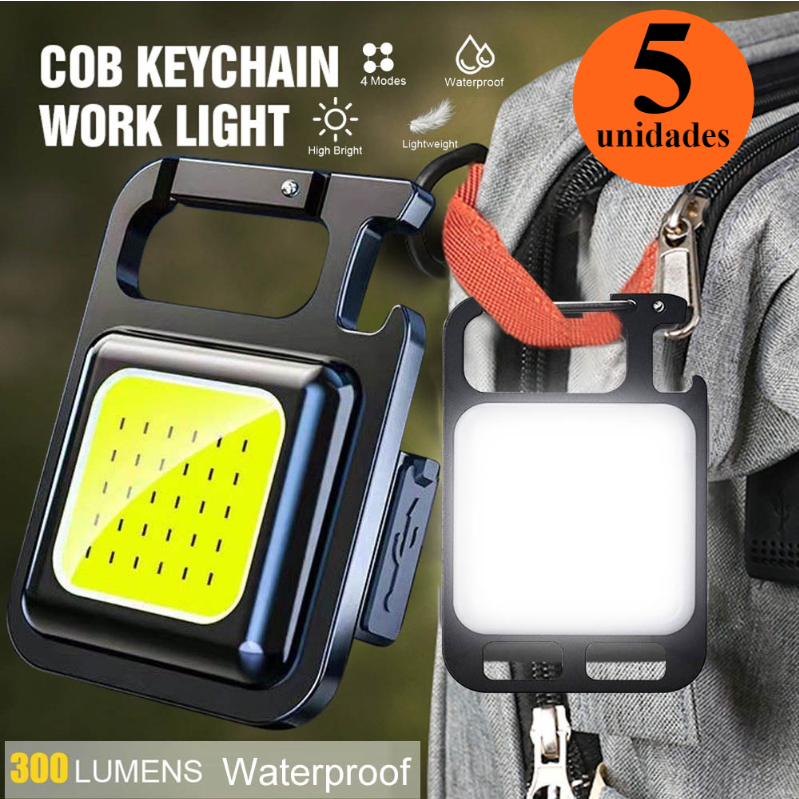 Kit Com 3 Mini Lanterna Chaveiro De Led COB Recarregável USB com Mosquetão e Abridor de Garrafas