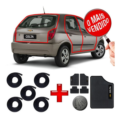 Kit Borracha Porta Celta 2006 Á 2015 5 Peças + Tapete Pvc