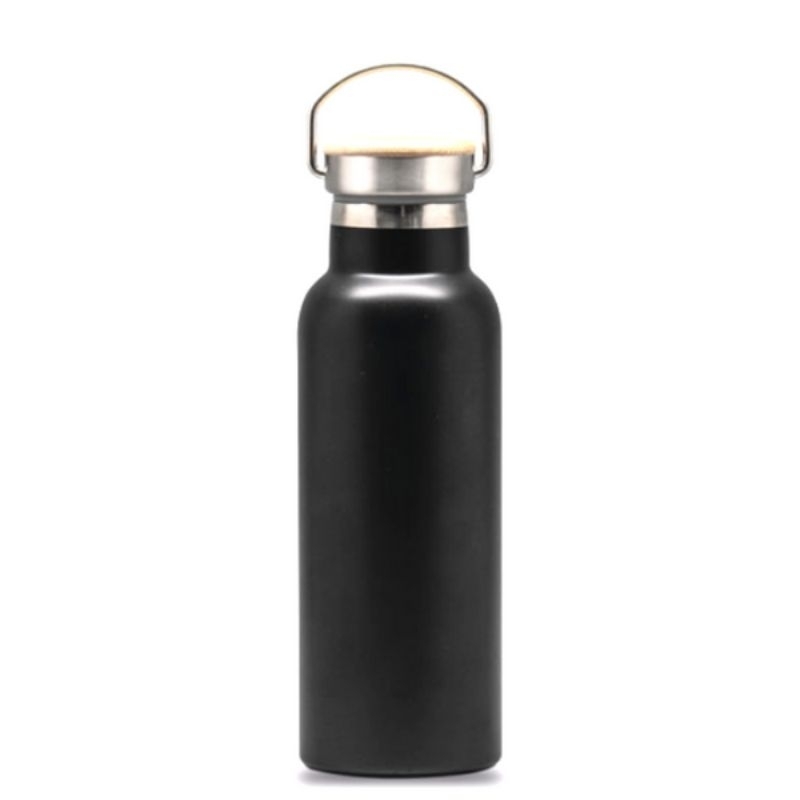 Garrafa térmica em inox com tampa de bambu - 500 ml