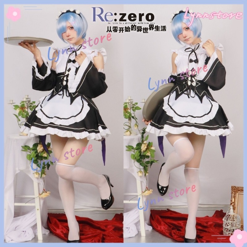 RAM/REM Cosplay Re:zero Kara Hajimeru Isekai Seikatsu Fantasias Lolita Vestido De Camareira Peruca Anime Fato De Festa