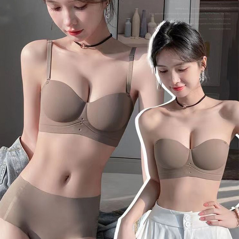 Novo Soutien Sem Costura Push Ups Expansão Externa Seios Pequenos Mostram Grande Confortável Roupa Inferior Fio Alças Escorregamento Para Mulheres