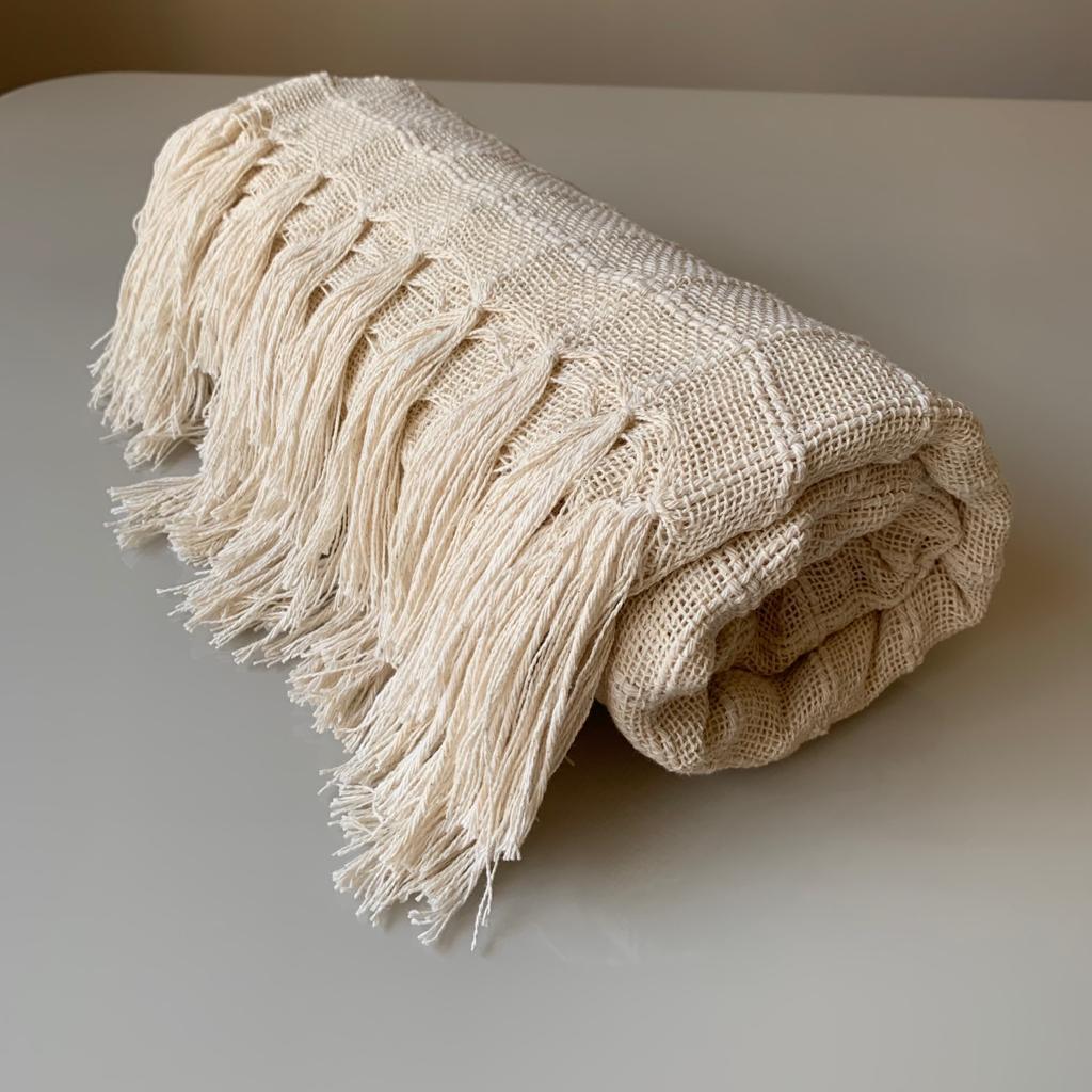 Kit Com 2 Mantas Pra Sofá Cru E Caramelo luxo Protetora/Decorativa 1.20X1.80M 100% Algodão Tear Mineiro
