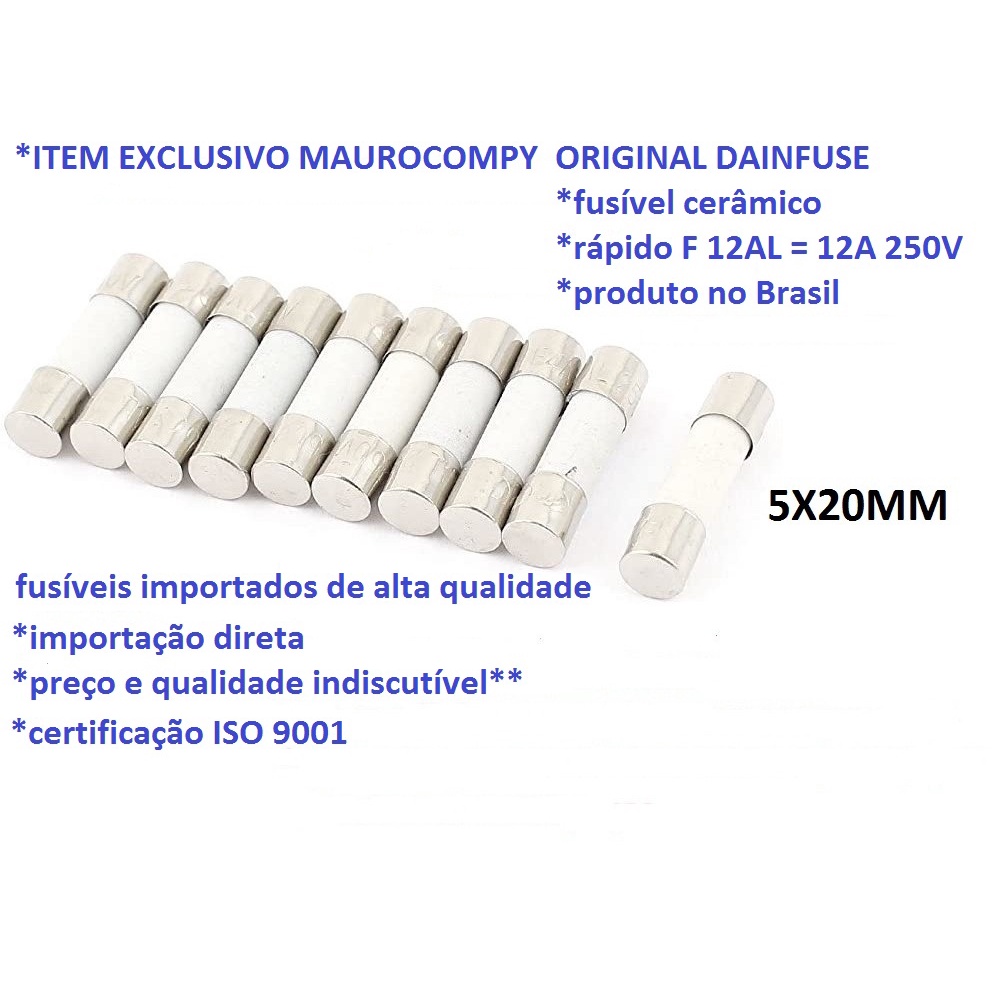 5 Pçs Fusível Cerâmico Rápido F 12al = F 12a 250v 5*20mm Encaixe