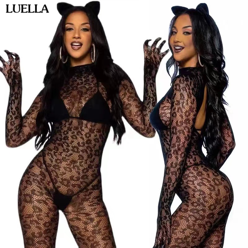 Meias eróticas, corpo inteiro oco sexy, meias leopardo, jacquard, meias de rede de uma só, roupas de rede
