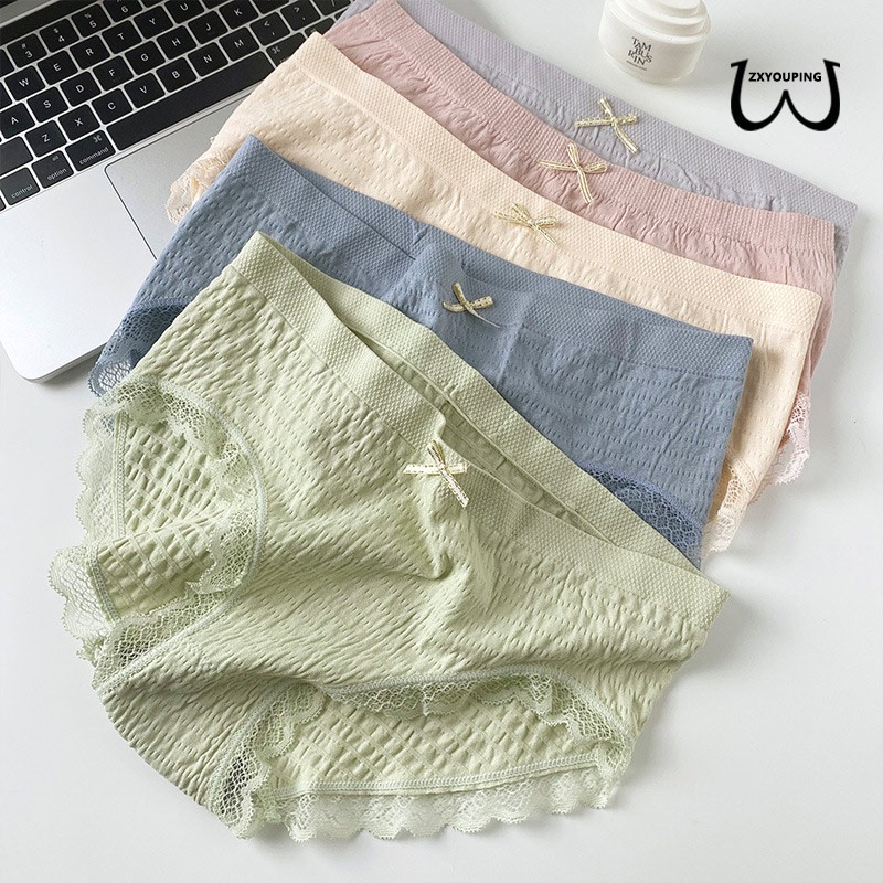ZXYOUPING kit 4 Calcinhas De Renda Feminina/Calcinha Sem Costura Antibacteriana Respirável Algodão Cintura Média/Lingerie Highelstic Fillet Bow Lace Underwear