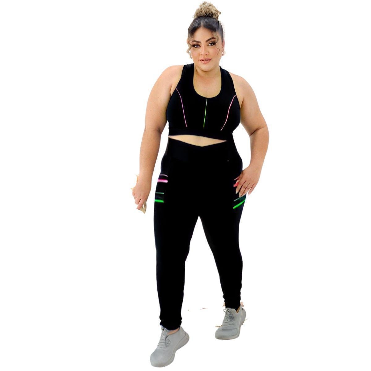 Conjunto Feminino Fitness Calça legging e Top Plus Size GG ao EXGG Modelo Curve