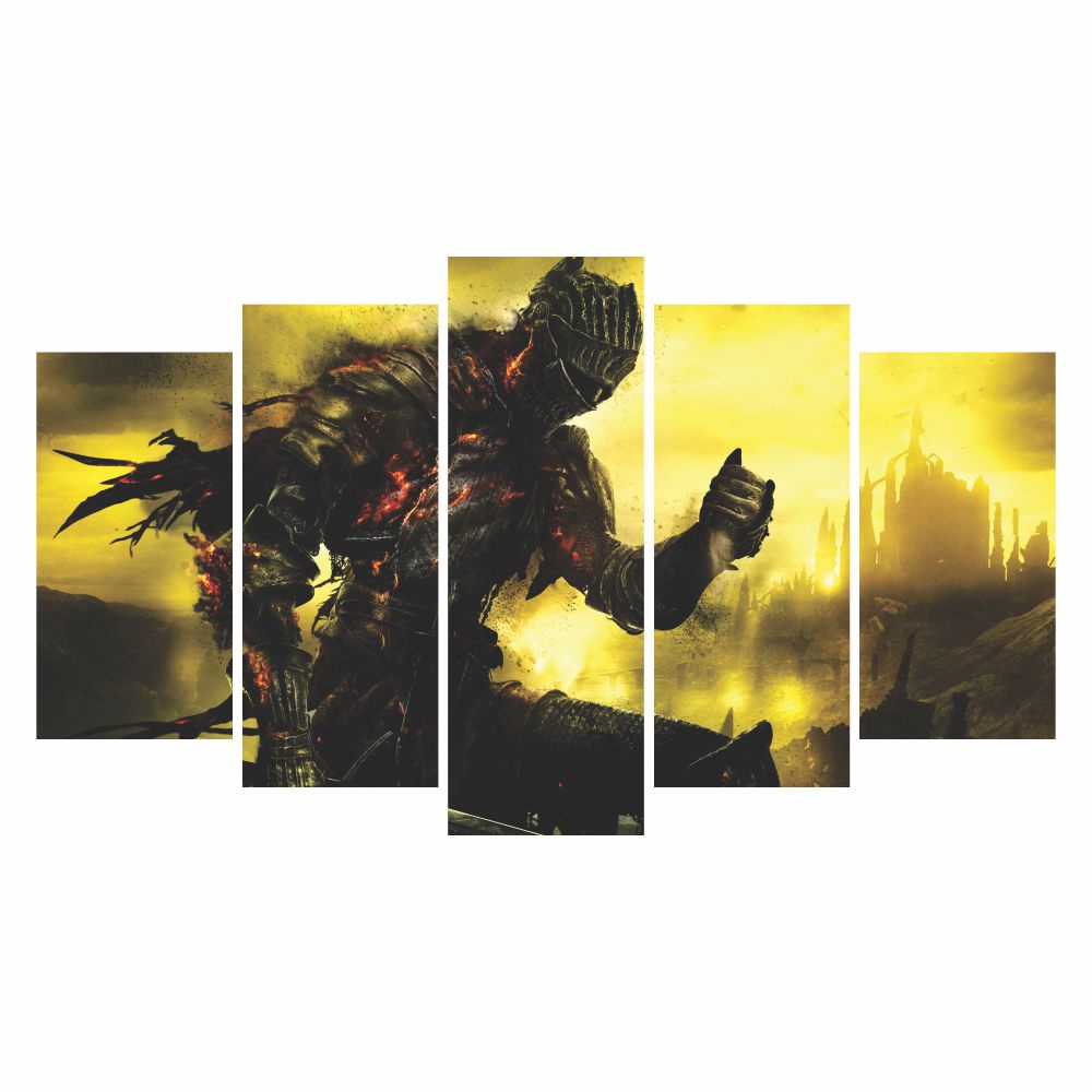 Quadro decorativo de mdf DARK SOULS - 60cm de altura x 102cm de largura Mosaico - 5 partes