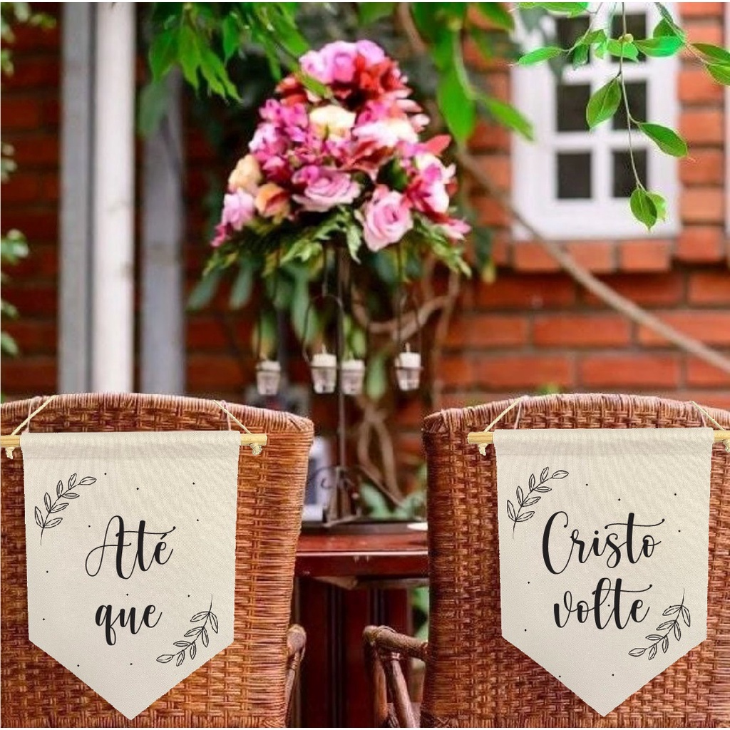 kit com 2 flamulas decorativas para casamento até que cristo volte