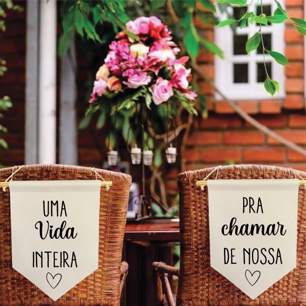 kit com 2 flamulas decorativas para casamento uma vida inteira pra chamar de nossa