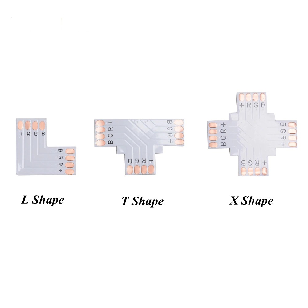Emenda Rápida Conector Pcb Em L X T P/ Fita Led 5050 Rgb 4 Vias 10mm