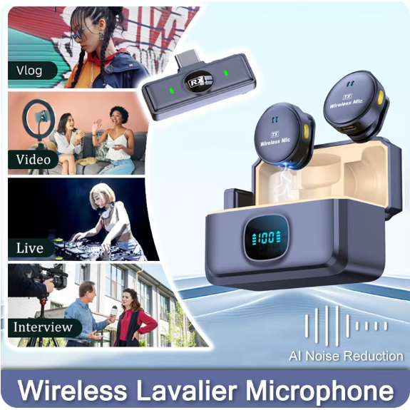 MINI Microfone Profissional De Lapela Sem Fio Com Caixa De Carregamento Para iPhone E Android/Celular Tipo-C/Youtube/Streaming Ao Vivo