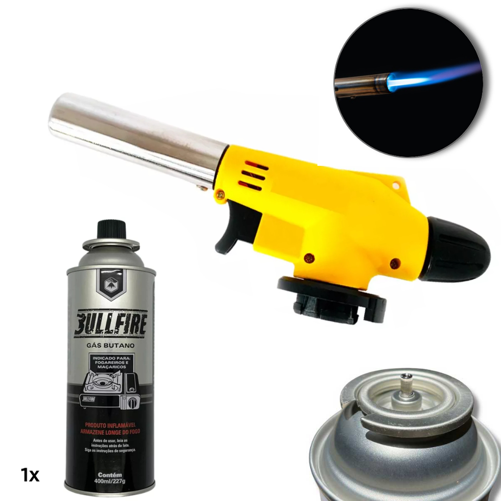 Kit Maçarico Portátil Culinário Gourmet Controle de chama regulagem manual Cozinha e Confeitaria profissional + 1 Refil