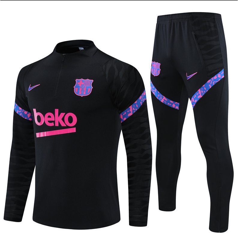 2222/23 Barcelona Black Halfzip Long Sleeves Manga Longa De Alta Qualidade Treino De Futebol De A BS