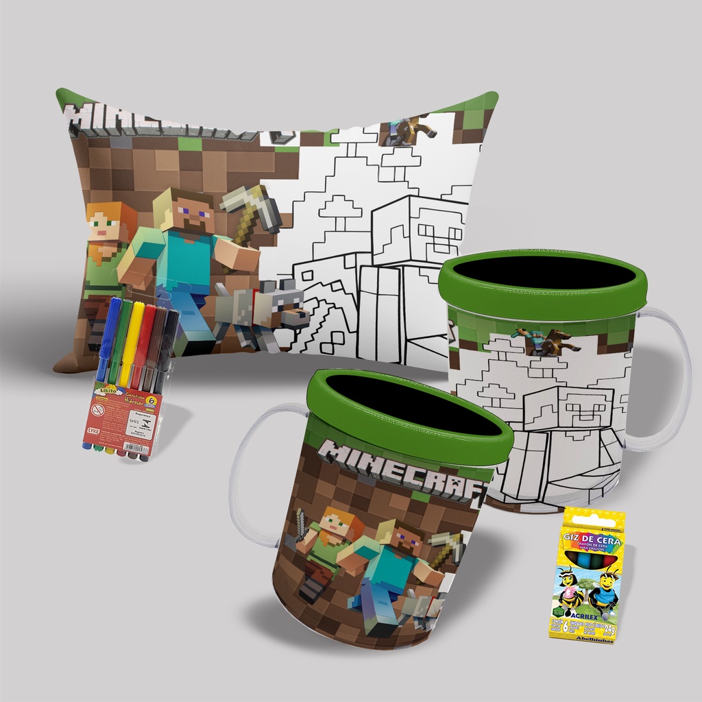 Kit Pinte e Lave Minecraft com Caneca de Acrílico e Almofada