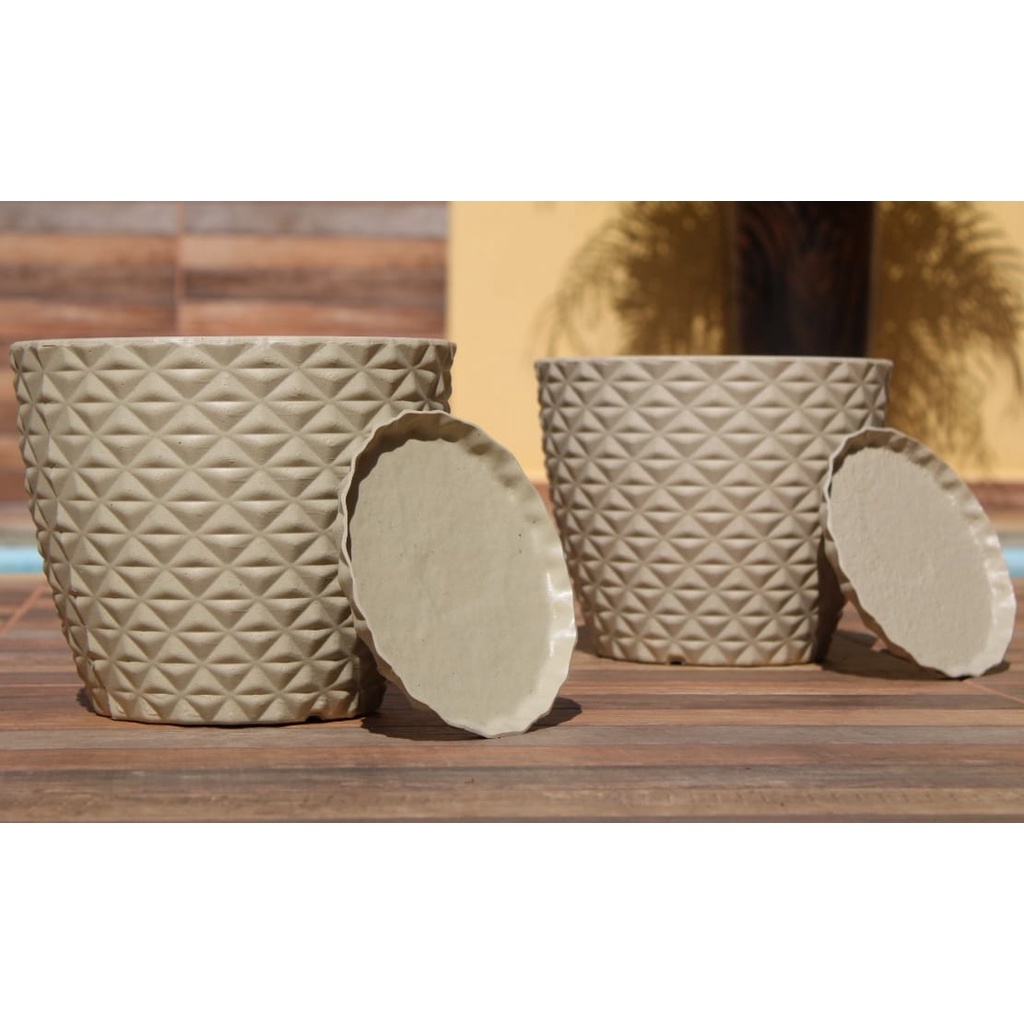 Kit com 2 Vasos de Planta em Polietileno Decorativo Bojo Redondo Diamante N1 COM PRATO