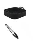 Kit Forro para Air Fryer Quadrada 21cm e Pinça Multiuso de 25cm em Silicone Preto - UnyHome