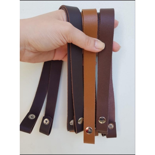Par de Alça 2cmx60cm com Botão de Pressão em Couro Legítimo