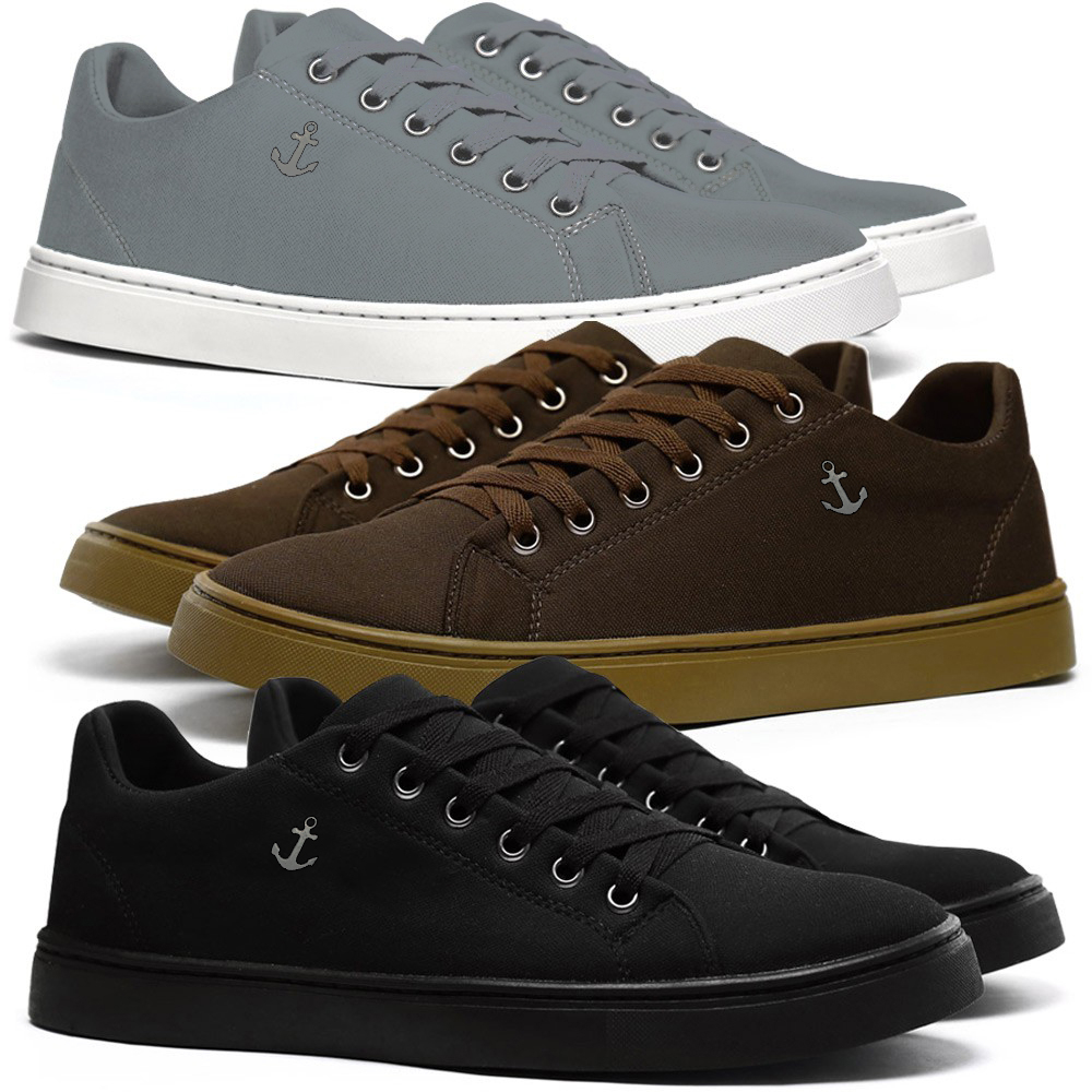 Tênis Masculino Adulto Kit 3 Pares Leve Macio Confortável Estilo Skate