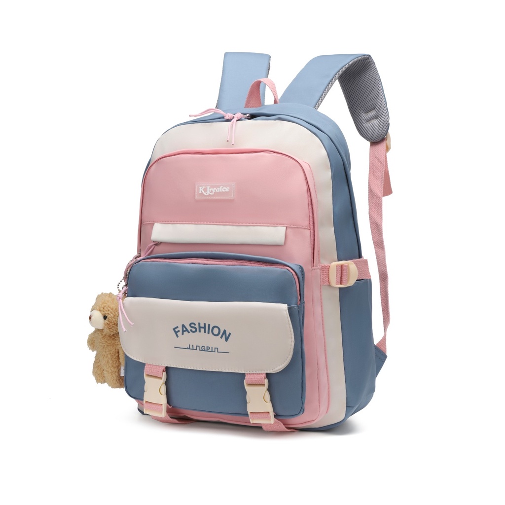 Mochila Escolar Grande Versão Coreana/Japonesa Antifurto Impermeável + Ursinho (6601)