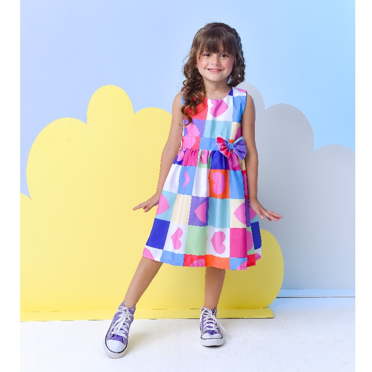 Vestido infantil Menina Feminino Colorido Tema Coração Casual Festa Aniversário