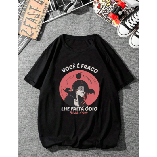 Blusa Camisa Camiseta Unissex Anime Itachi Uchiha Frase Você É Fraco Lhe Falta Odio