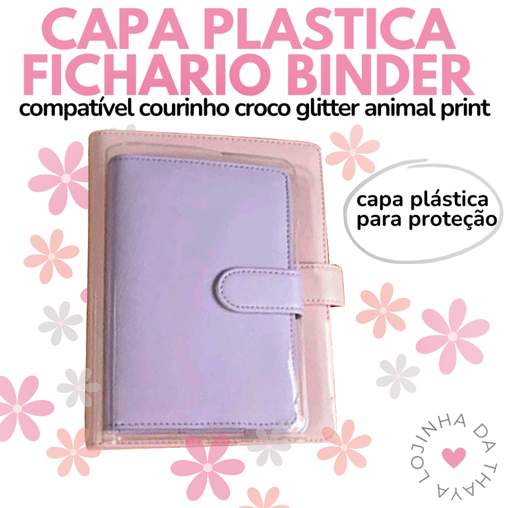 capa plástica maleável transparente proteção fichário binder courinho croco glitter animal print A6 A5