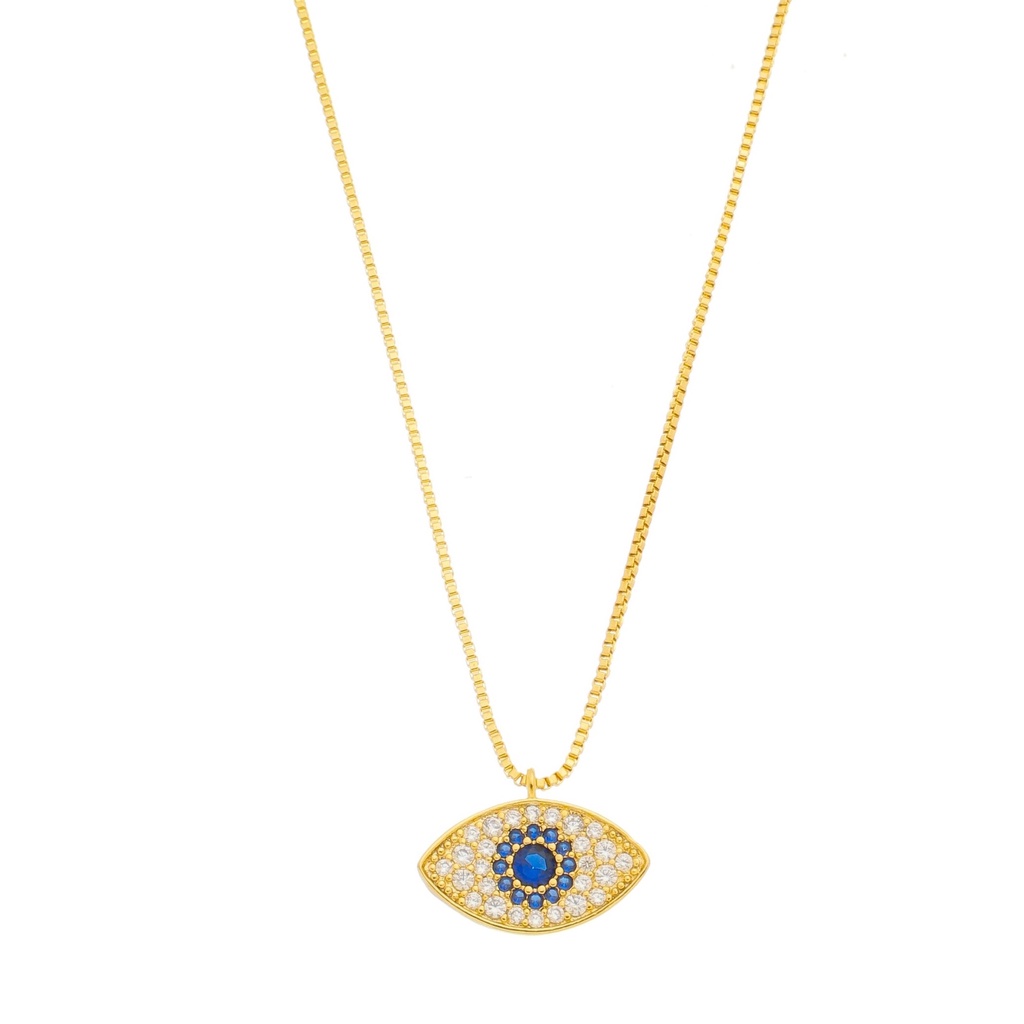 Colar Gargantilha Olho Grego Pequeno Cravejado de Zircônias Banhado a Ouro 18K semi joias de luxo (GA 2628)