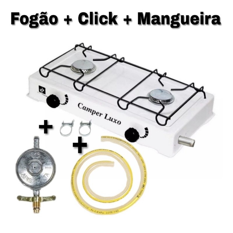 Fogão 2 bocas a Gas Camping + Click Completo Mangueira Registro - Fogareiro Caminheiro Acampamento