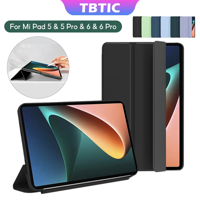 Tbtic capa inteligente de couro pu para mi pad 5 pro tablet capa protetora para mi pad 6 6pro case funda suporte magnético para despertar automático