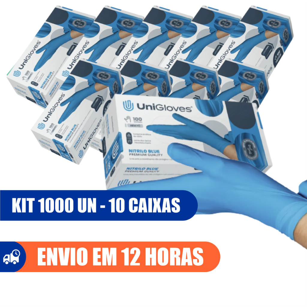 Luva Nitrílica Azul Blue Kit 1000un 10 Caixas Sem Pó Procedimento Unigloves