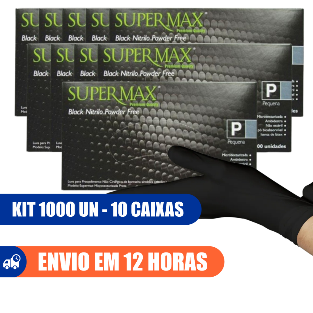 Luva Nitrílica Kit 1000un Descartável Black Preta Sem Pó Procedimento Supermax