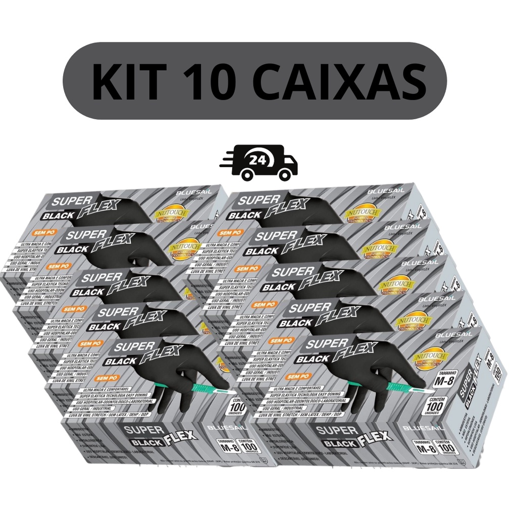 Kit 10 Caixas Luva Vinil Preta Descartável Sem Pó 1.000 Unidades