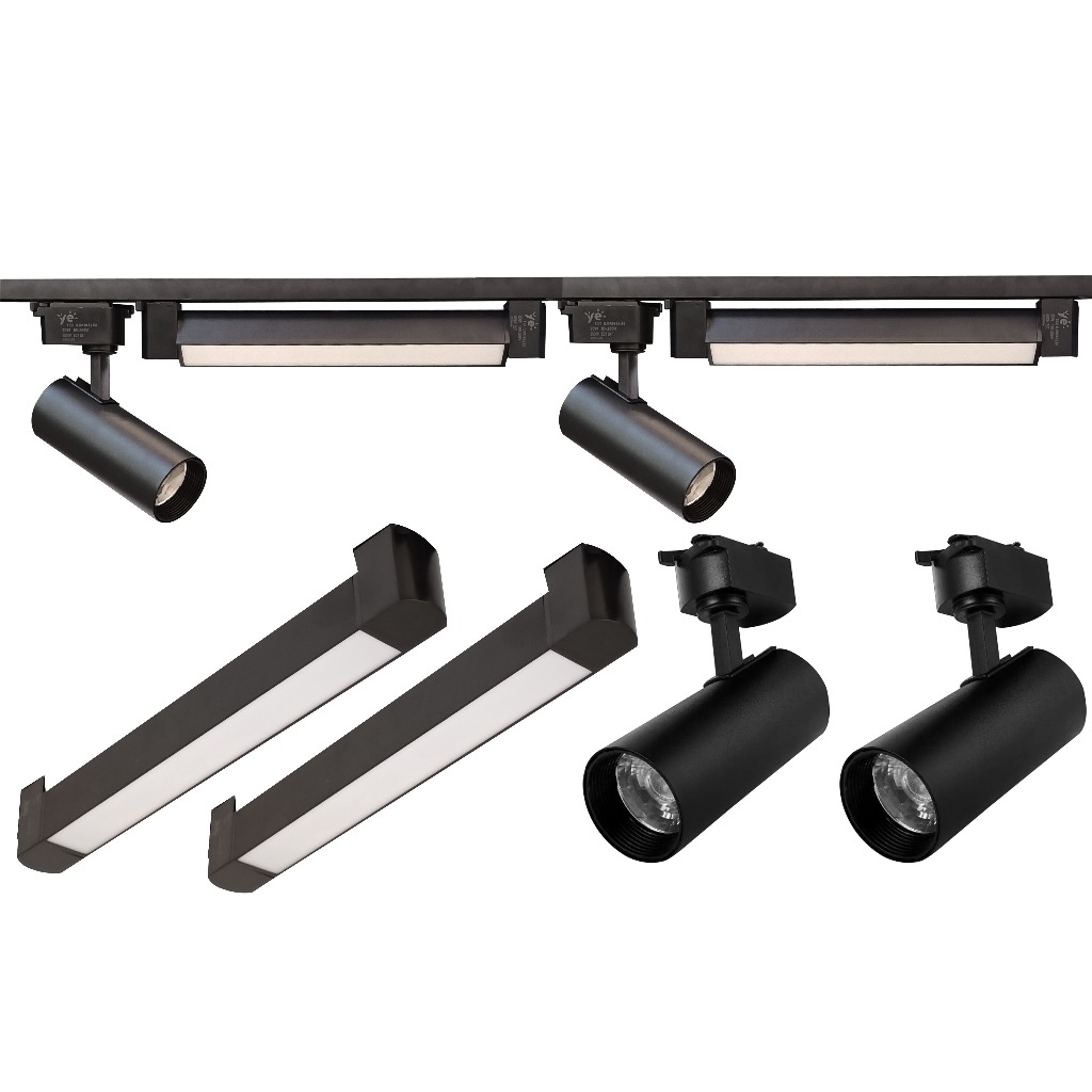 Kit 2 Peças de Luminária Difusa 20W Preto/Branco + 2 Peças de Spot 20W Preto/Branco + 1 Trilho 1M Preto/Branco Alumínio