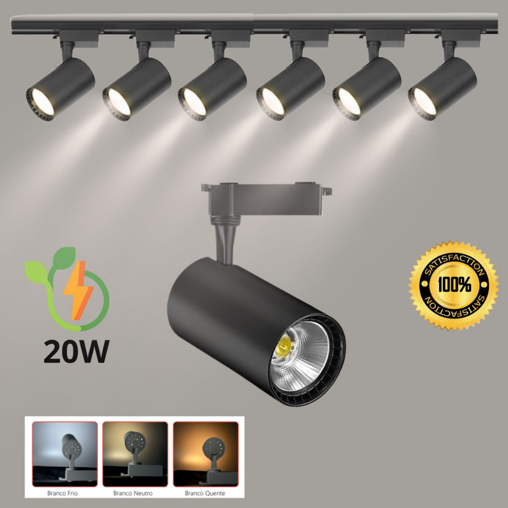 Lâmpada Spot Led 20W + Trilho Preto 2, 3, 4, 6 , 8 ou 10 Lâmpadas LED Branco Quente ou Neutro Frio Luminária Trilho de Luz de Teto Melhor Preço da Shopee