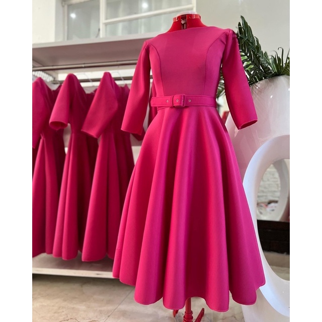 vestido supermidi de pregas na malha neoprene ou montaria acompanha bolsinho e cinto do mesmo tecido vestido de festa moda evangélica