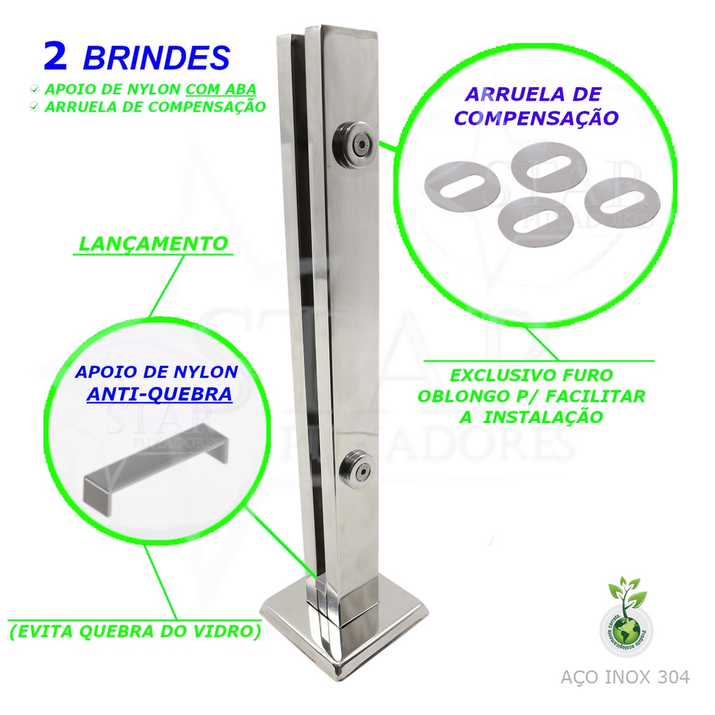 Coluna Torre Inox 40cm Guarda Corpo Com Chumbador