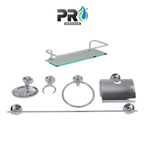 Kit banheiro Acessório Para banheiro lavabo Aço Inox 6 Peças Com Porta Shampoo Reto cod405