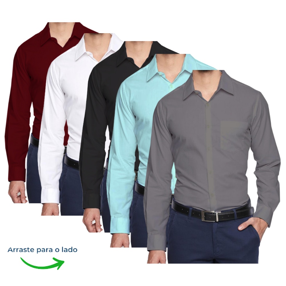 Kit 5 Camisa Social Masculina Manga Longa Forma Tradicional - Não Amassa de Microleve - Entrega Rápida