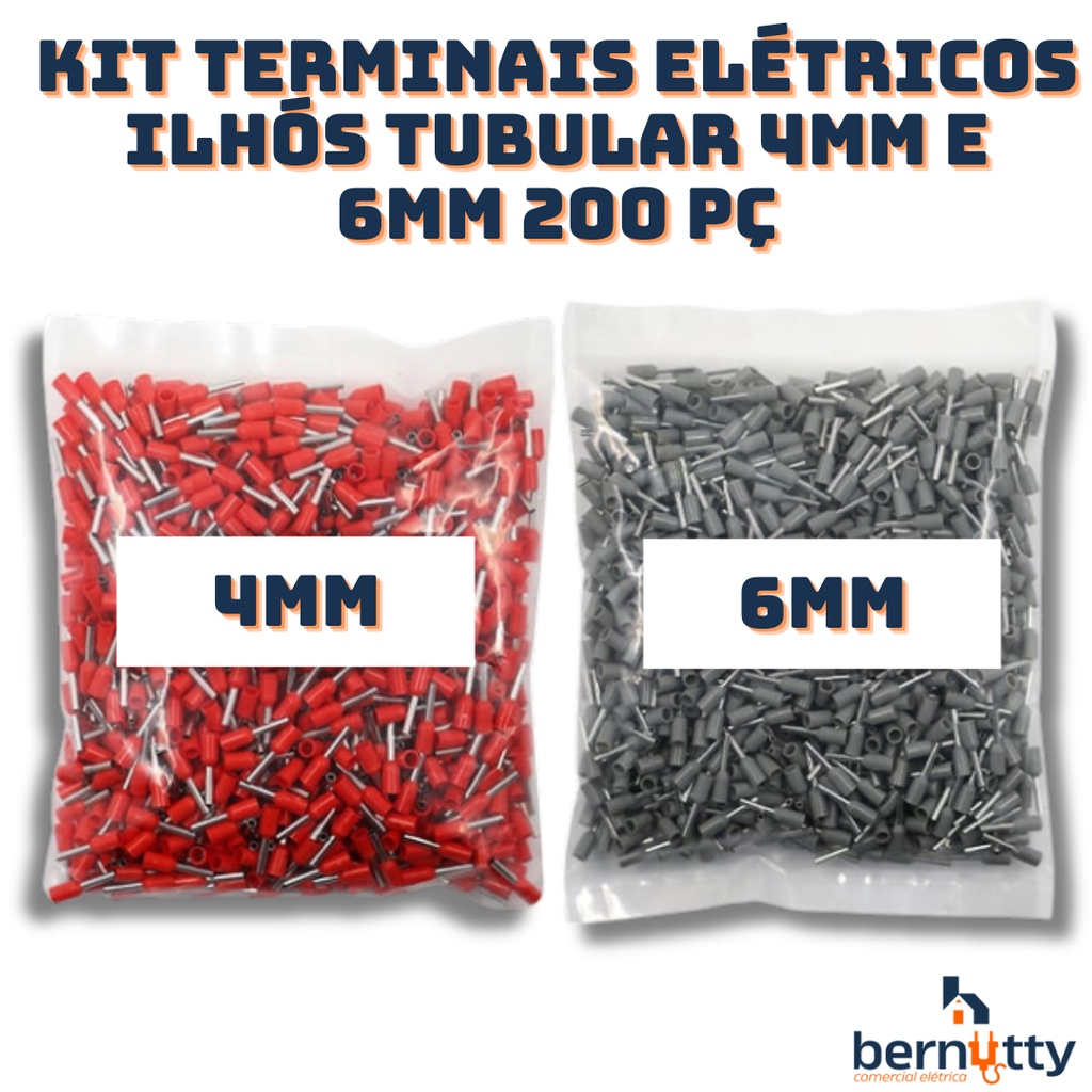 Kit Terminais Elétricos Ilhós Tubular 4mm E 6mm 200 Pç