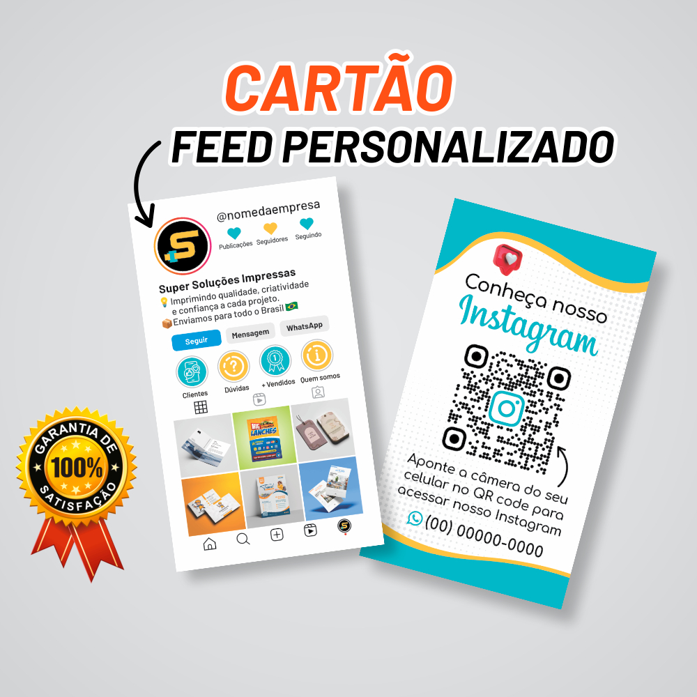 Cartão de Visita Estilo Feed Instagram com qr-code - Frente e Verso - Arte Gratuita - Envio HOJE!