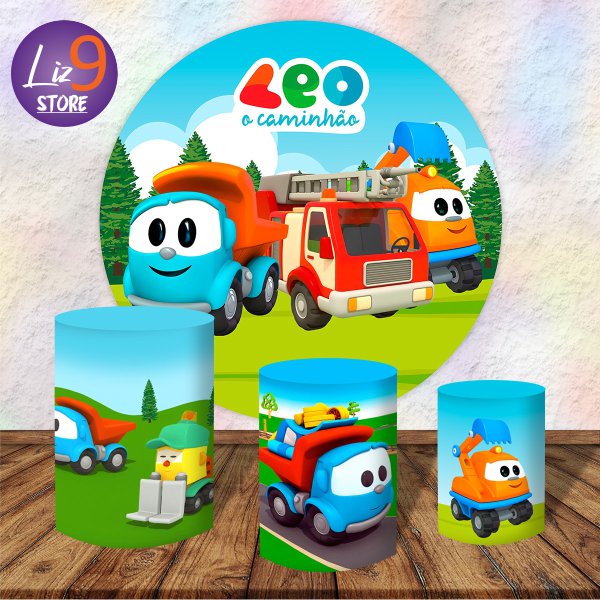Kit Painel Redondo Sublimado Leo Caminhão 1,50M + Trio Capas de Cilindro C/Elastico Veste Facil