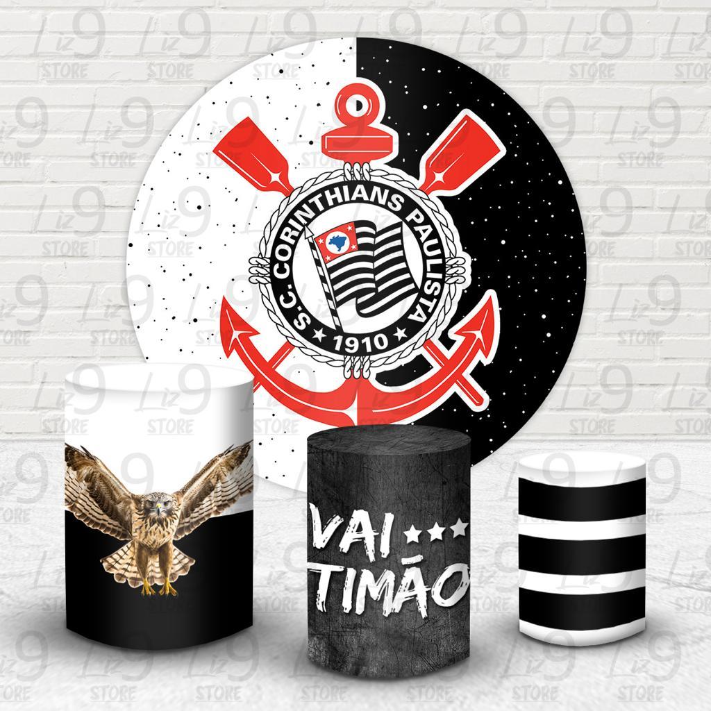 Kit Painel Redondo Sublimado Corinthians Tradicional 1,50M + Trio Capas de Cilindro C/Elastico Veste Facil