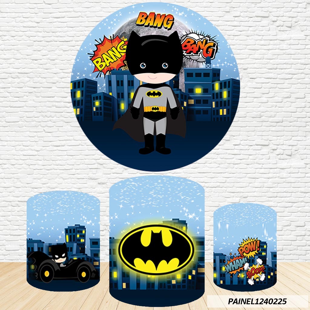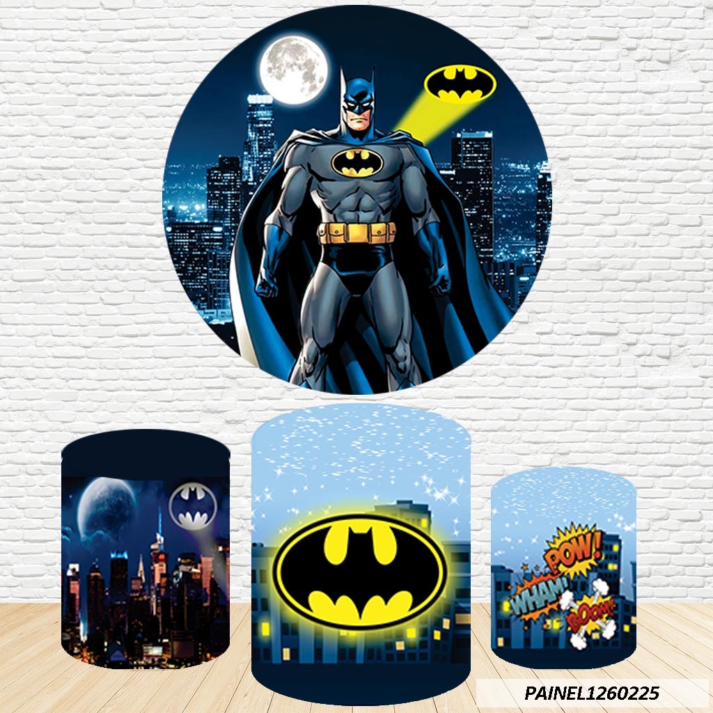 Kit Painel Redondo Sublimado Batman 1,50M + Trio Capas de Cilindro C/Elastico Veste Facil